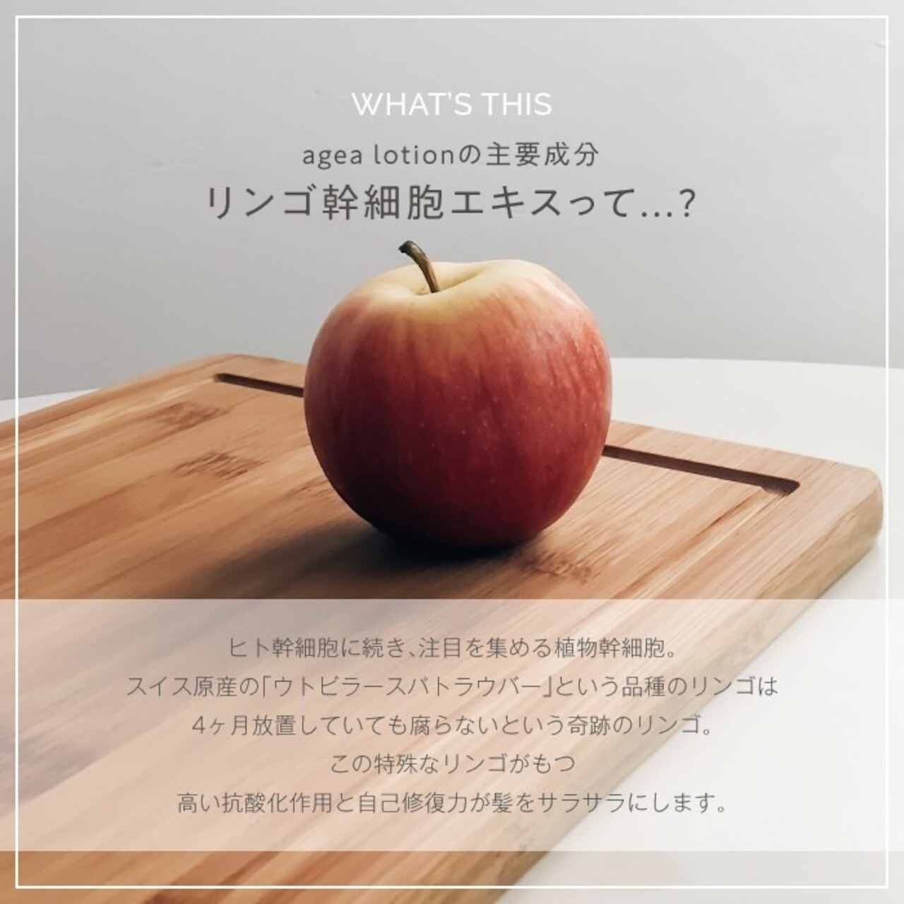 髪の美容液「エイジアローション」髪ががサラサラになるリンゴ幹細胞培養液と美容成分をたっぷり配合。